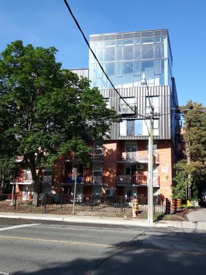 Wigwamen Terrace is a 103-apartment complex for seniors located at 14 Spadina Road beside the Native Canadian Centre of Toronto just north of Bloor St. The building is “L” shaped with one wing being 6 storeys high and the other being 3 storeys high.
